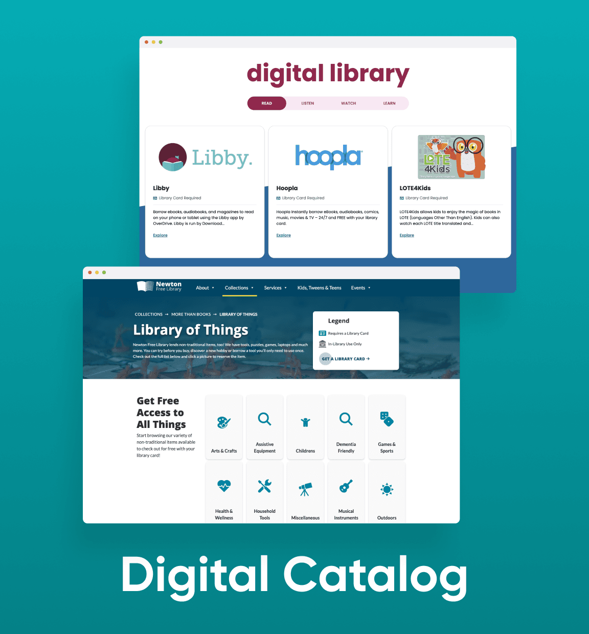 Stirling discovered a niche with libraries early on, and it’s only grown since. Believe it or not, we were the original “Libby” before OverDrive launched an eBook and audiobook app with the same name. After a few too many mix-ups, we rebranded as Library Siteworks, a subdivision of Stirling Brandworks dedicated to delivering UX and brand services specifically for libraries. I led the strategy and design behind Library Siteworks, guiding everything from client workshops and user research to branding, UX, and site architecture. I also built the reusable design system using modular components and TailwindCSS styles, which streamlined the team’s workflow and became the foundation for every Siteworks site.